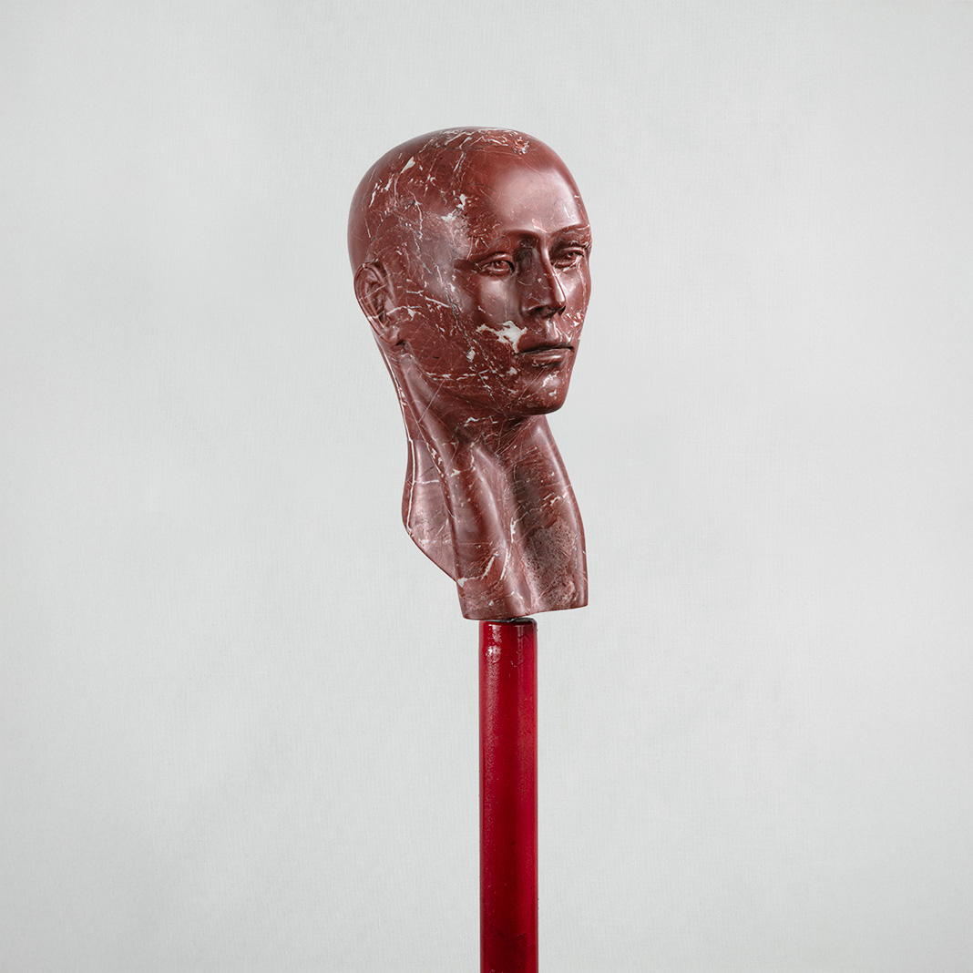 Red Spanish Alicante Marble on Iron Pedestal | 140x30x30cm 16kg